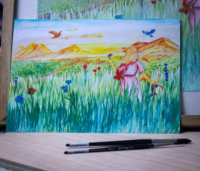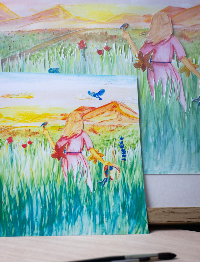 L’œuvre évoque un instant de calme et de contemplation, un moment suspendu où la nature et l’humain respirent à l’unisson. Chaque détail invite à la sérénité, à la poésie, et à cette sensation fragile de liberté silencieuse.